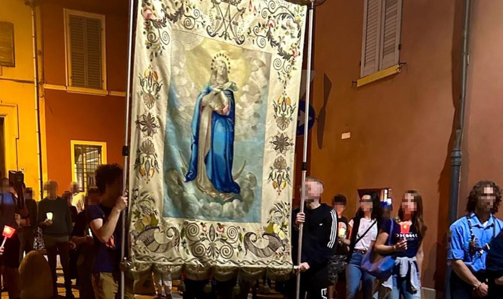 La fiaccolata per la conclusione del mese ha inizio al crepuscolo del 31 maggio davanti all’altare dell’Immacolata Concezione della chiesa di San Francesco. Accendendo le candele, uno all’altro, si illuminano i volti, gli sguardi, i sorrisi dei fedeli. La catena luminosa si avvia verso la chiesa di San Pietro per congiungere simbolicamente le due parrocchie. Davanti la croce, poi gli scout, poi i due ragazzi che reggono l’arazzo con Maria, seguono don Paolo, don Marco, i cantori e poi tutti noi a fare vibrare i cinque misteri della gloria con le nostre voci attraverso i vicoli e verso il Paradiso. Le diverse età, storie e provenienze diventano un coro di anime equivalenti. Nella fiaccola di ognuno c’è la fede, la speranza, c’è l’amore, la bellezza di essere nel corpo di Cristo risorto. Uno nell’altro, non di fianco. Insieme in cammino verso il regno. Insieme nell’unico Spirito sotto la protezione di Maria. Con l’ingresso nella chiesa di San Pietro spegniamo le candele. Don Paolo in un intenso commento sulla visitazione ci invita a metterci in viaggio verso la montagna per raggiungere in fretta la nostra città Giuda. Con l’affidamento a Maria si conclude la nostra fiaccolata e torniamo nelle nostre case diversi da come siamo usciti perché ogni pellegrinaggio verso la Gerusalemme celeste ci cambia, ci rende più consapevoli che siamo cittadini, anzi concittadini del cielo.